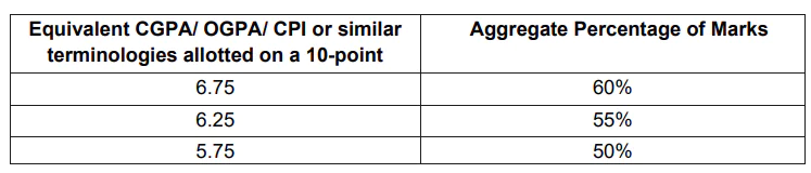 - Minimum 50% marks (Pass class for SC/ST/PwBD candidates)